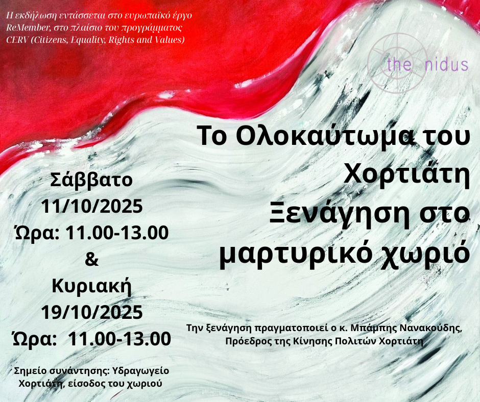 Σας προσκαλούμε την Τετάρτη 18 Ιουνίου 2025 και ώρα 19:00, στην εκδήλωση μνήμης για το Ολοκαύτωμα του Χορτιάτη
